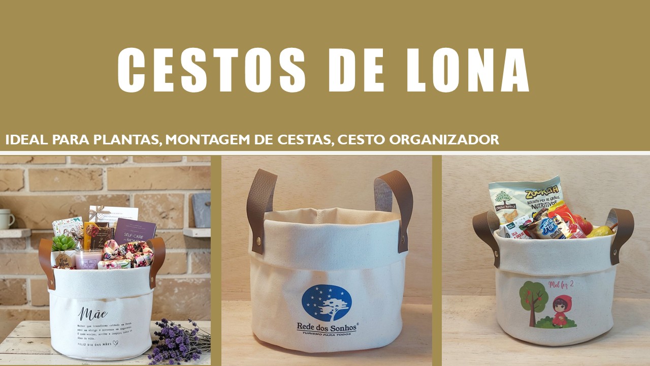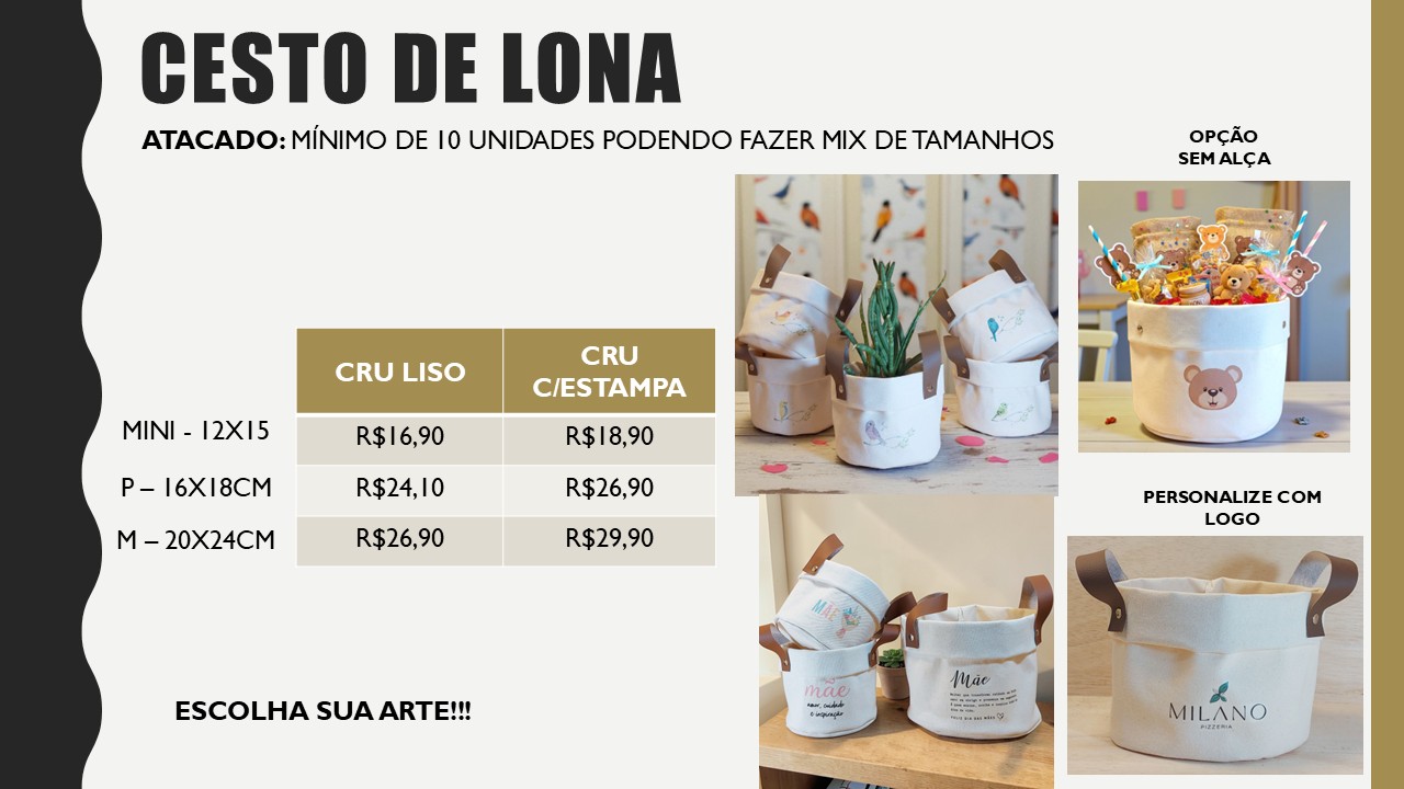 Sacolinha Minibag com Cesto de Lona - Mundo da Criança - Personalizada - Estampa Padrão - Algodão Cru - Lembrancinha de Aniversário