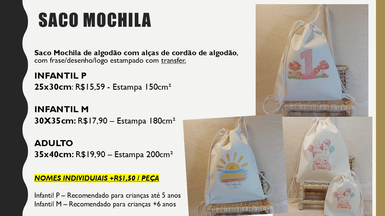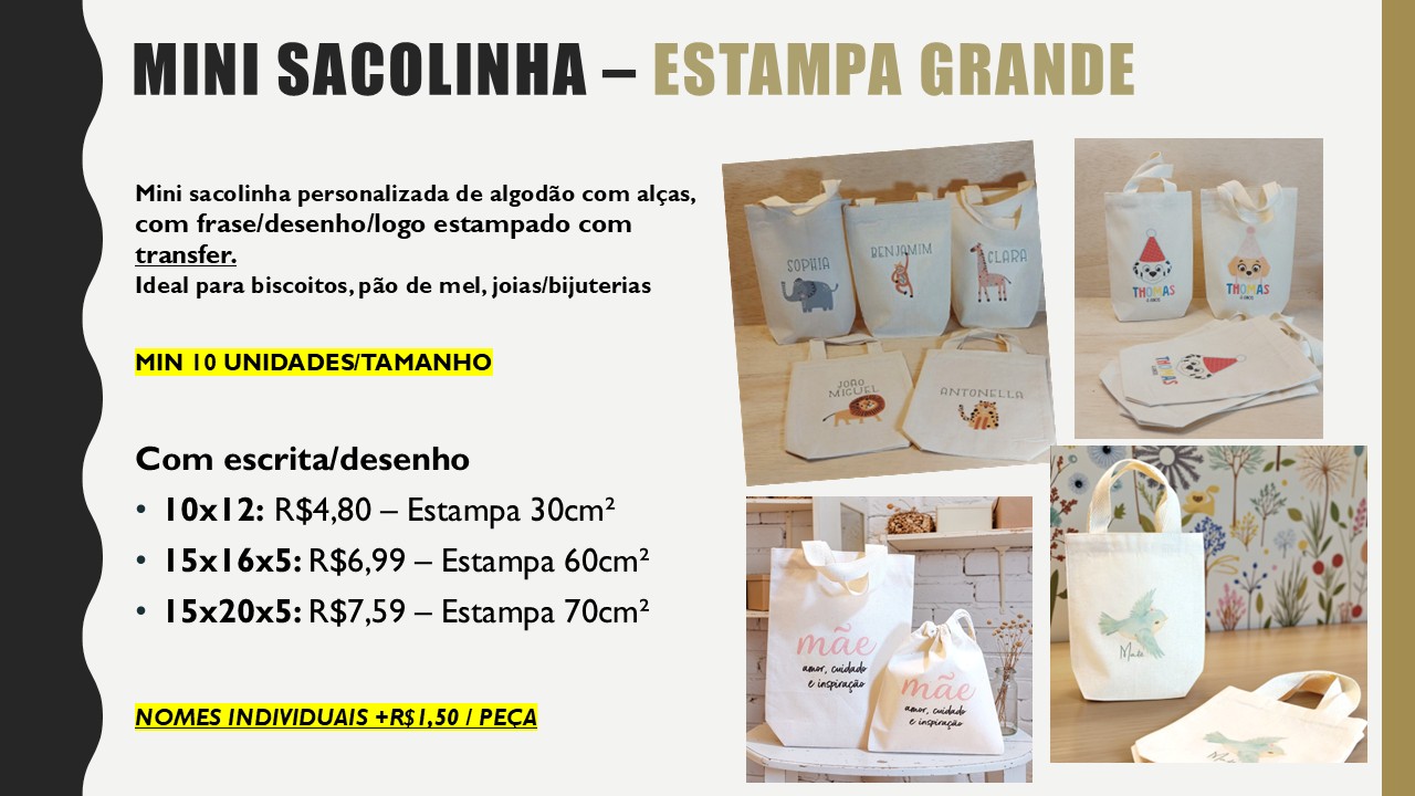 Sacolinha Minibag Logotipo - Sua Marca - Personalizada - Estampa Padrão - Algodão Cru - Brinde Personalizado