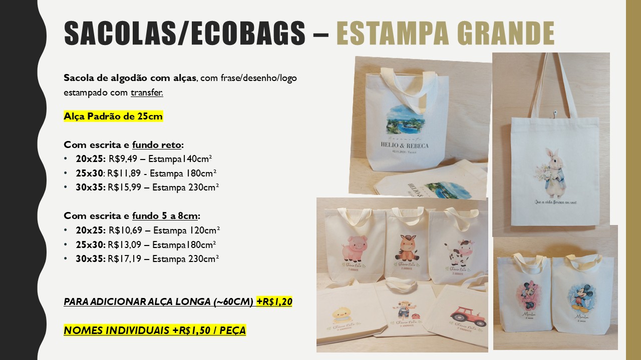 Ecobag Logotipo - Sacola Ecológica Personalizada - Algodão Cru & Tecido - Lembrancinha