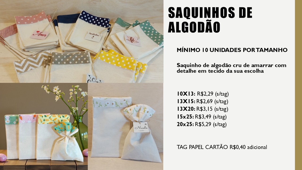 Saquinho Presente - Brinde - Logotipo - Detalhe em Tecido - Tag Personalizada - Lembrancinha